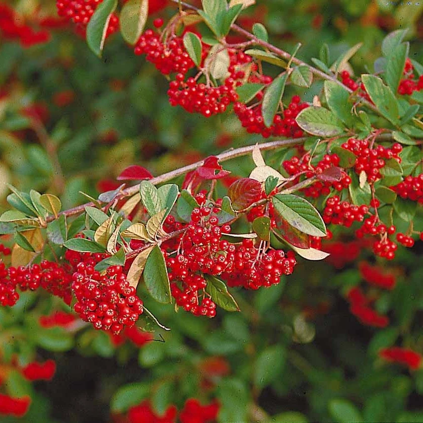 Petit arbuste d’ornement très décoratif en automne et en hiver grâce à ses baies rouges qui apparaissent après une floraison estivale. Son feuillage persistant, sa résistance au froid et sa culture peu exigeante en font un arbuste populaire auprès des jardiniers. Son port étalé en fait un excellent couvre-sol mais il est aussi utilisé en haie, en massif ou en bordure.